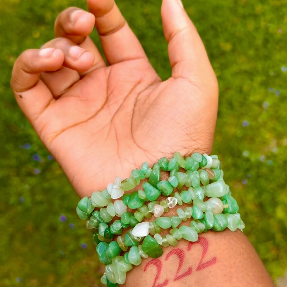 Invite abundance, harmony, and fresh energy into your everyday style with this beautiful Green Aventurine Chipped Crystal Bracelet. Each natural chip bead is uniquely shaped, showcasing the crystal’s earthy green tones and organic texture. Known as the Stone of Opportunity, Green Aventurine is believed to attract luck, prosperity, and positive new beginnings.